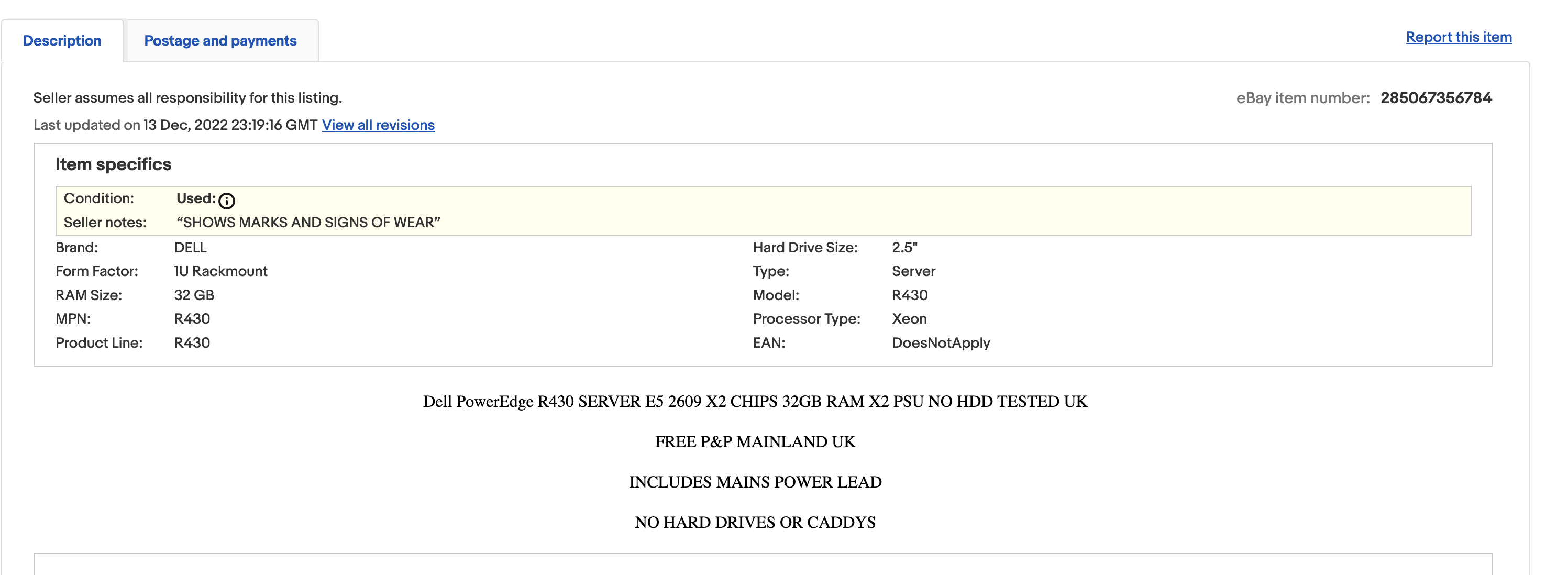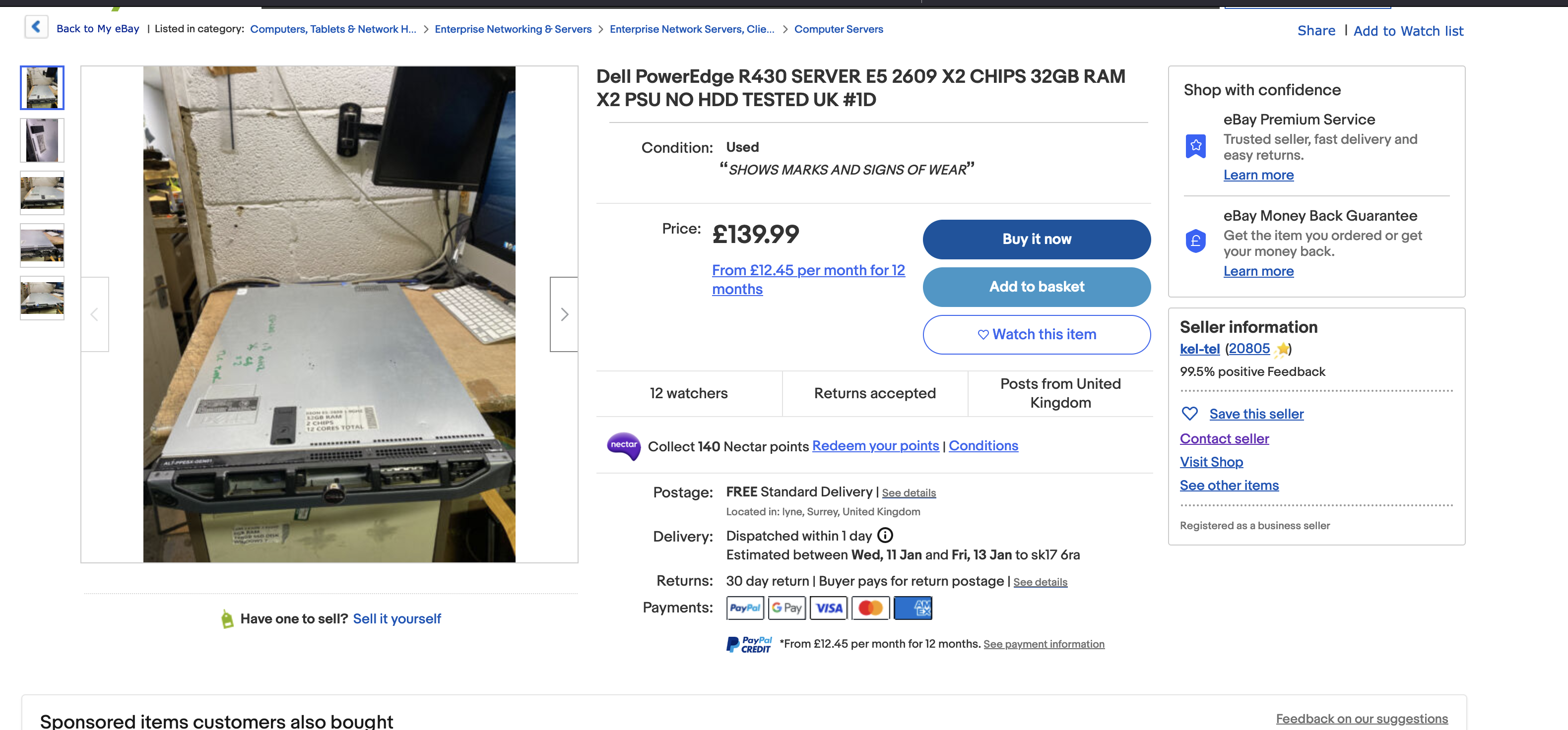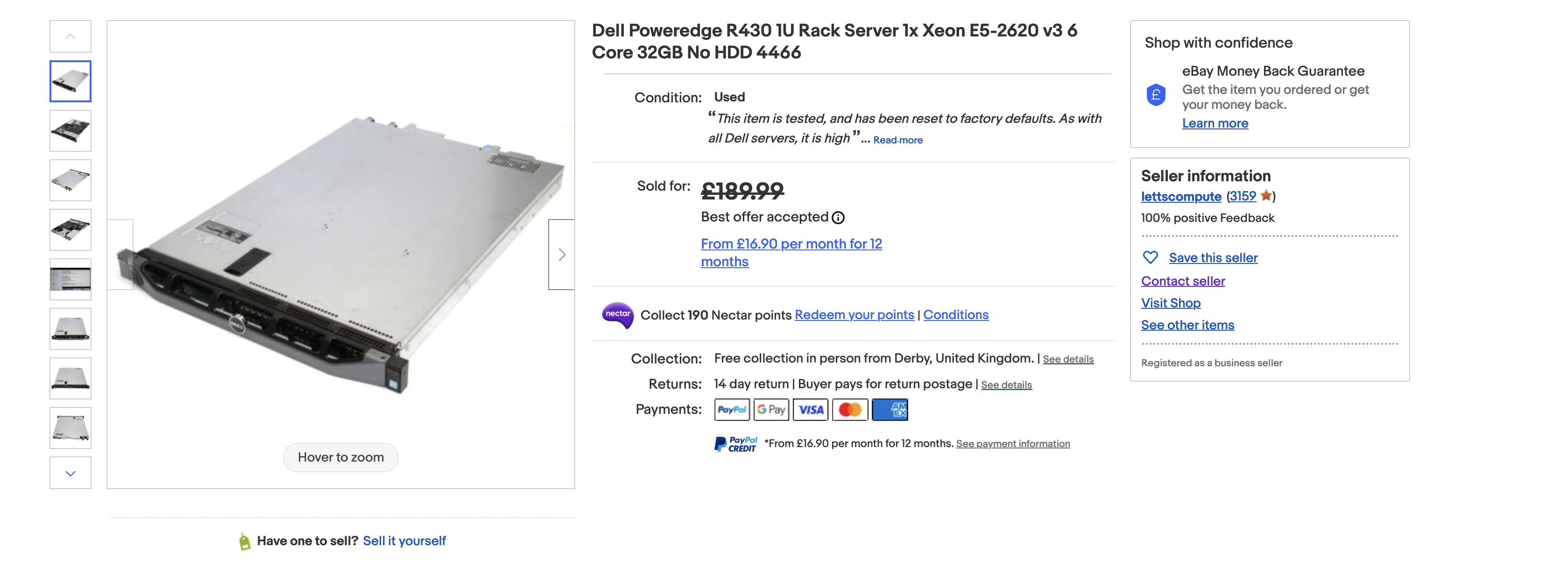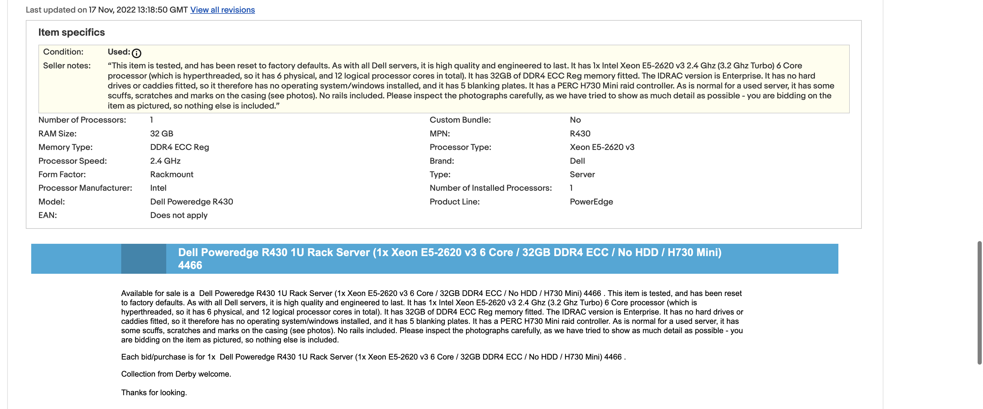 The second was for £189.99, single CPU installed - 32GB RAM, IDRAC Enterprise, 2 PSU’s, not as scuffed - pick up at Derby only.